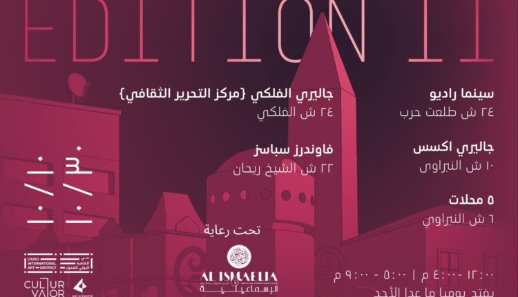 للعام الثاني علي التوالي تستقبل منطقة وسط البلد بالقاهرة النسخة الثانية من معرض “حي القاهرة الدولي للفنون” والذي يضم مجموعة من المعارض الفردية والجماعية للفن المعاصر بالإضافة إلى المشاريع الفنية المستقلة، وتقام في 9 مواقع مختلفة بوسط البلد تمثل مزج بين التراث المصري مع الفن المعاصر وذلك في الفترة من 10 حتى 30 أكتوبر الجاري، وسوف تقدم “آرت دي إيجيبت” خلال فاعليات الحدث معارض فنية تشمل الفوتوغرافية واللوحات والمنحوتات، وأعمال من فن التجهيز في الفراغ، ووسائط متعددة أخرى من الفنون، من خلال معرضين فرديين و معارض جماعية أخري ، بمشاركات عالمية من ايطاليا وتونس واسبانيا والامارات وبريطانيا والسودان وفرنسا والولايات المتحدة والسعودية.