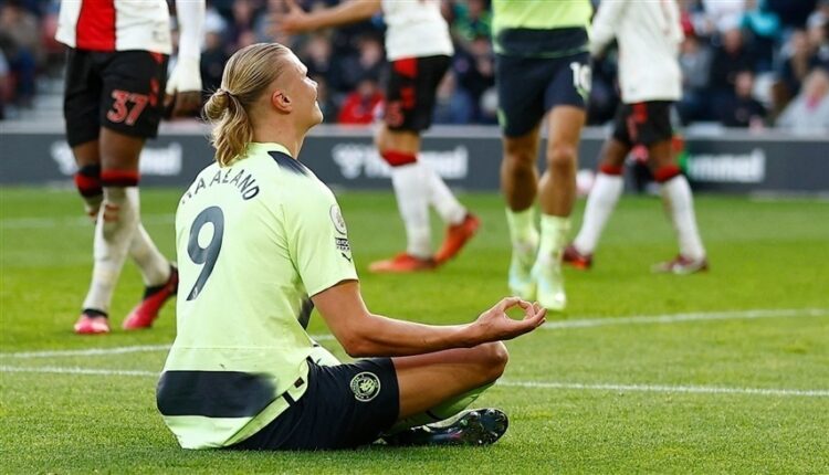 وانضم هالاند (22 عاماً) إلى سيتي من بروسيا دورتموند هذا الموسم، وأصبح الآن على بعد أربعة أهداف من الرقم القياسي لعدد الأهداف في موسم واحد بالدوري الإنجليزي لآلان شيرر وآندي كول (34 هدفاً).
