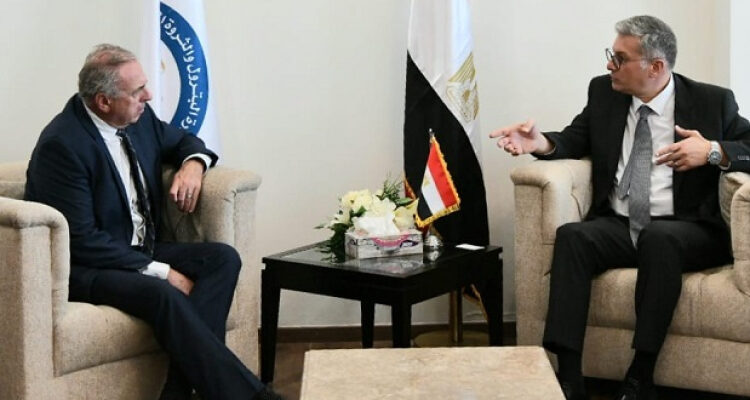 عقد المهندس كريم بدوى وزير البترول والثروة المعدنية بمقر مكتبه بالعلمين الجديدة جلسة مباحثات مع وفد من شركة فالكو انرجى الامريكية ضم ثور براكل الرئيس التنفيذي للعمليات وايمان هيل المدير العام للشركة بمصر وتوفيق نصيف نائب الرئيس التنفيذي للعلاقات الحكومية .