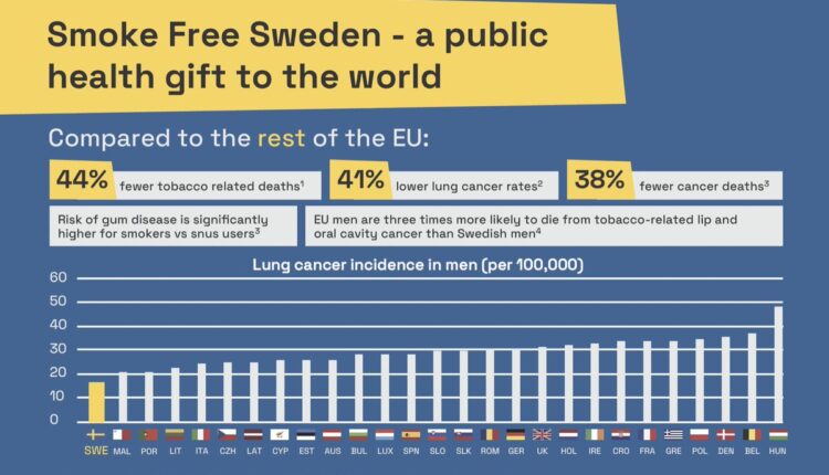 وكانت الحكومة السويدية قد أعلنت تنفيذها العديد من البرامج التثقيفية لمواطنيها، للتوعية بمخاطر التدخين، والتي تتضمن إتاحة تداول منتجات التدخين البديلة، سواء السجائر الإلكترونية أو التبغ المسخن وغيرها من منتجات حديثة أثبتت العديد من الدراسات العلمية أنها أقل خطورة مقارنة بالسجائر التقليدية، بجانب نشر المعلومات الموثوقة الخاصة بالمنتجات الحديثة، لمساعدتهم على الإقلاع.