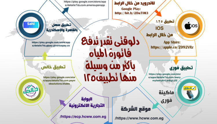 أعلنت الشركة القابضة لمياه الشرب والصرف الصحي عن الانتهاء من الإصدار الجديد من فواتير المياه، عن شهر يناير ٢٠٢٢، وأصبحت متاحة للدفع بعدة طرق الكترونيه للتسهيل والتيسير على المواطنين،وذلك من خلال:-