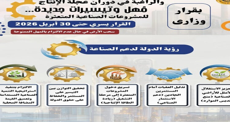 وقال وزير الصناعة “إن هذه التيسيرات تستهدف دعم الاستثمار الصناعي وتعزيز الاستغلال الأمثل للأراضي الصناعية المخصصة، بوصفها من أهم موارد ومقومات تحقيق التنمية الصناعية وتذليل العقبات أمام المستثمرين الجادين، والاستجابة لطلبات العديد من أصحاب المشروعات المتعثرة، ومراعاةً للظروف التي تعرضت لها هذه المصانع خلال الفترة الماضية”.