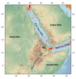 أوضح الدكتور وفيق نصير عضو البرلمان العالمي أن ما تشهده منطقة التقاء الفالق الأفريقي الشرقي (المعروف بنظام أفار) في إريتريا وإثيوبيا من نشاطاً جيولوجياً عنيفاً، يشمل هبوطاً أرضياً في وادي داناكيل الإريتري وانفجارات بركانية نشطة مثل إرتا علي وهايلي غوبي، حيث يمتد الفالق من البحر الأحمر جنوباً عبر إثيوبيا وجيبوتي بأن ذلك النشاط يرتبط بانفصال الصفائح النوبية والصومالية والعربية عند نقطة التقاء أفار الثلاثية، مما يؤدي إلى شقوق أرضية وهزات أرضية متكررة بلغت 4.9 درجة في المنطقة مؤخراً. (خريطة نقطة التقاء أفار الثلاثية توضح امتداد الفالق نحو البحر الأحمر وخليج عدن). وأضاف نصير بأن ذلك تلوث البيئة يفاقم هذه الظواهر، إذ يزيد الاستنزاف المائي والتعدين غير المنظم في داناكيل من سرعة الهبوط الأرضي، بينما تطلق البراكين غازات ثقيلة وأحماضاً تتفاعل مع الغلاف الجوي لتسريع التآكل الجيولوجي.