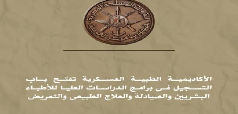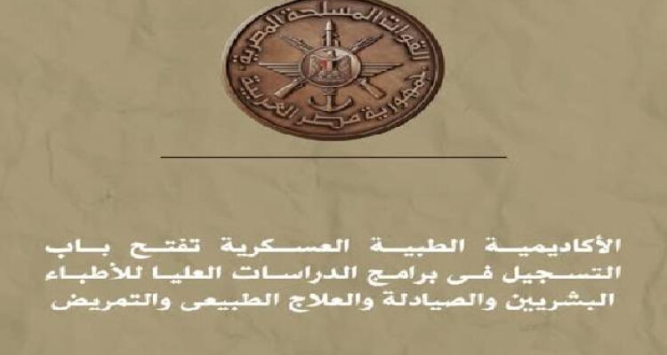 أعلنت الأكاديمية الطبية العسكرية عن فتح باب التسجيل فى برامج الدراسات العليا لقبول دفعة جديدة من الأطباء البشريين والصيادلة والعلاج الطبيعي والتمريض للحصول على الدرجات العلمية في (الماجستير – الدكتوراة – البورد) بالمعاهد التابعة للأكاديمية.