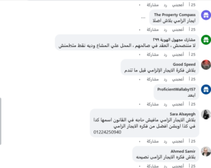 ولكن بدلًا من الحصول على تأكيدات، جاءت الردود صادمة وحاسمة، حيث انهالت التعليقات المحذرة من الشركة ومن فكرة “الإيجار الإلزامي” بشكل عام. وتصدرت تعليقات مثل “بلاش فكرة الإيجار الإلزامي نصيحه”، و*”ابعد”، و”بلاش فكرة الإيجار الإلزامي قبل ما تندم”* النقاش، مما يعكس حالة من عدم الثقة والقلق تجاه عروض الشركة.
