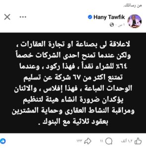 وفي منشور له عبر حسابه الرسمي على منصة “فيسبوك”، دق توفيق ناقوس الخطر، مشيرًا إلى أن لجوء بعض الشركات العقارية لتقديم خصومات ضخمة تصل إلى 64% في حالات الشراء النقدي (Cash) يعد دليلاً قاطعاً على حالة من “الركود” تضرب القطاع، حيث تضطر هذه الشركات إلى “حرق الأسعار” لتوفير سيولة عاجلة بأي ثمن.