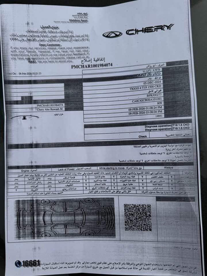 تقدم أحد عملاء جي بي أوتو، وكيل علامة Chery في مصر، بشكوى رسمية ضد توكيل غبور بسبب مشاكل خطيرة ومتكررة في سيارة Chery Tiggo 4 Pro فئة ثانية موديل 2025، منذ استلامها في فبراير 2025.
