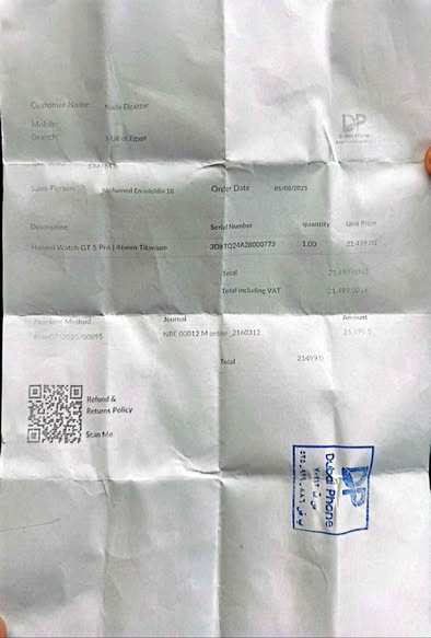 أثارت شكوى أحد المستخدمين جدلًا عبر منصات التواصل الاجتماعي، بعد تعرضه لمشكلة في ساعة ذكية من طراز Huawei GT 5 Pro اشتراها في مايو 2025 بسعر يقارب 22 ألف جنيه.